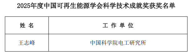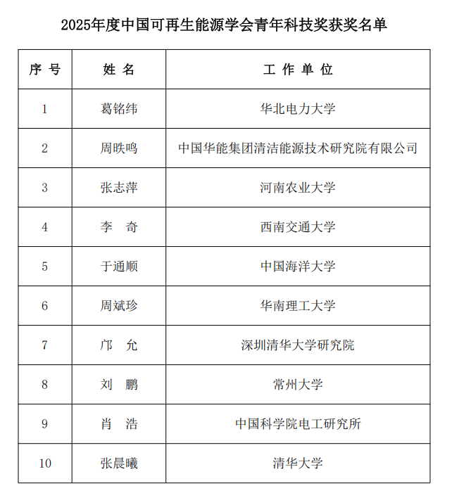 关于 2025 年度中国可再生能源学会科学技术奖拟授奖名单的公示