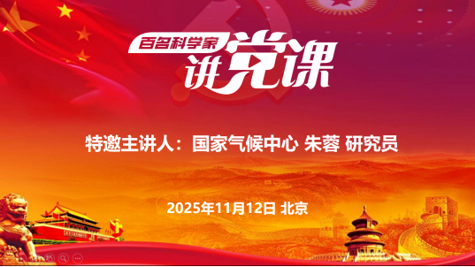 2025年11月12日,中国可再生能源学会“百名科学家讲党课”活动在北京举办。本次活动特邀主讲人为国家气候中心朱蓉研究员。